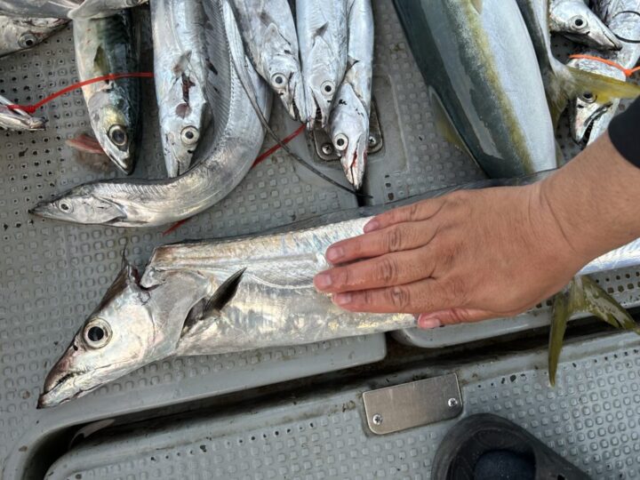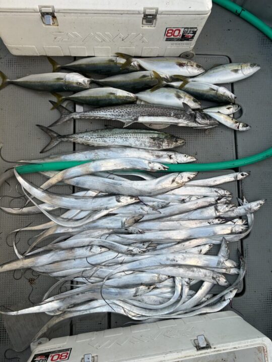 青物ジギングの予定でしたが、太刀魚が釣れまくっているので太刀魚もやる方向で出港しました。