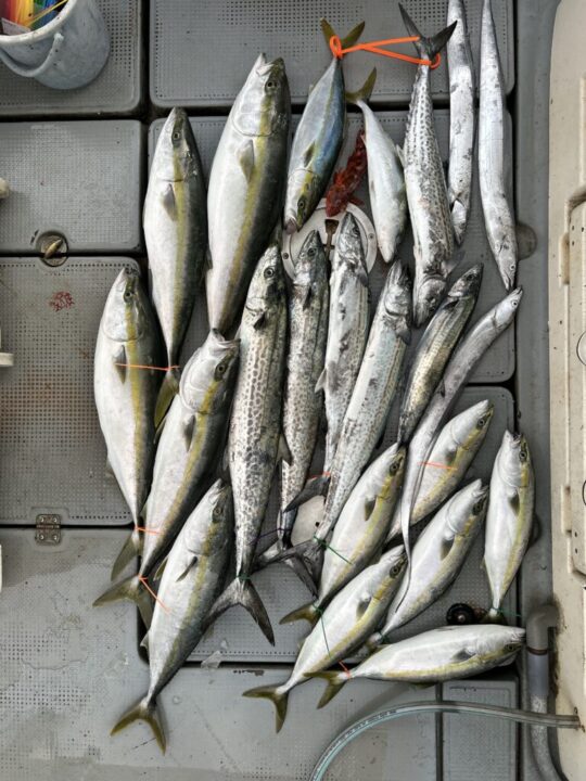 11月24日の釣果2025年 タチP お世話になります。 遊漁船元丸です。 変わらずタチパターンが続いております。 潮が落ちてきて食いが悪くなってきました。 難しい釣りになりそうな気がしましたが 難しい釣りになりそうな気が、、、、 サワラとハマチのダブル初めてみました。 ブリも釣っていただきました❗️ 2匹目のブリ。 メチャ釣りますやん。 本日もご乗船いただきありがとうございました。 また遊びにきてね! じゃあね👋 Share Tweet 前の記事へ 釣果情報TOPへ 次の記事へ