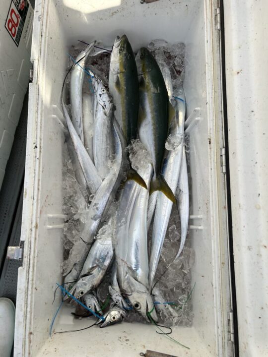 12月15日の釣果2025年 太刀魚と青物 お世話になります。 遊漁船元丸です。 今日は太刀魚と青物をやりました。 テンヤでは安定のF5🖐️ ジグでもテクニカルにF5🖐️ 青物ではサワラに切られて、ヤズはポツポツ。 なかなか厳しい展開になりました。 ちょっと数が伸びない日でした。 本日もご乗船いただきありがとうございました。 また遊びにきてね! じゃあね👋 Share Tweet 前の記事へ 釣果情報TOPへ 次の記事へ