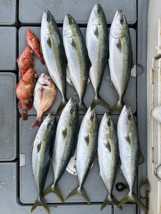 3月29日の釣果2026年 タイラバと青物ジギング お世話になります。 遊漁船元丸です。 この日は、チャーターでタイラバとジギングで出港しました。 とりあえずは、得意のジギングで青物を取っておきます。 今日も好調のNo.9 ジャンジャンバリバリ タイラバは昨日良かったところが、今日はもひとつ うっかりも混ざって 青物は全員安打でしたが、タイラバは厳しい結果になってしまいました。 本日もご乗船いただきありがとうございました。 また遊びにきてね! じゃあね👋 Share Tweet 前の記事へ 釣果情報TOPへ 次の記事へ