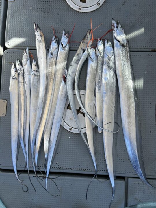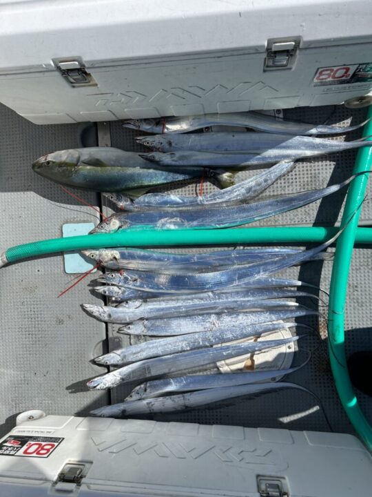10月5日の釣果2025年 🐉松山沖幻の太刀魚🐉 お世話になっております。 遊漁船元丸です。 日中も過ごしやすい気温になってきました🌞 太刀魚の情報を頂いたので見に行ってみました🐉 指3本アベレージでした。 ジギングはなかなか魚が見つからずに1本で終わりました😞 太刀魚は全員安打でしたが厳しい日になりました。 本日もご乗船いただきありがとうございました。 また遊びにきてね! じゃあね👋 Share Tweet 前の記事へ 釣果情報TOPへ