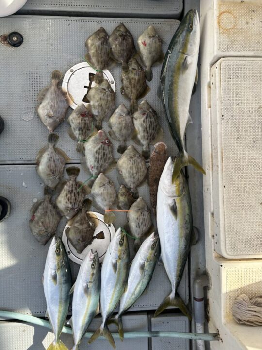 10月26日の釣果2025年 カワハギと青物ジギング お世話になっております。 遊漁船元丸です。 今日はチャーター便でカワハギと青物ジギングに行ってきました。 カワハギのハイシーズンなのですが最近は不調っぽいので坊主逃れで青物ジギングを抱き合わせてあります。 さて、釣果の方は のちに、青物ジギングでは とりあえずカワハギ釣れました。 本日もご乗船いただきありがとうございました。 また遊びにきてね! じゃあね👋 Share Tweet 前の記事へ 釣果情報TOPへ 次の記事へ